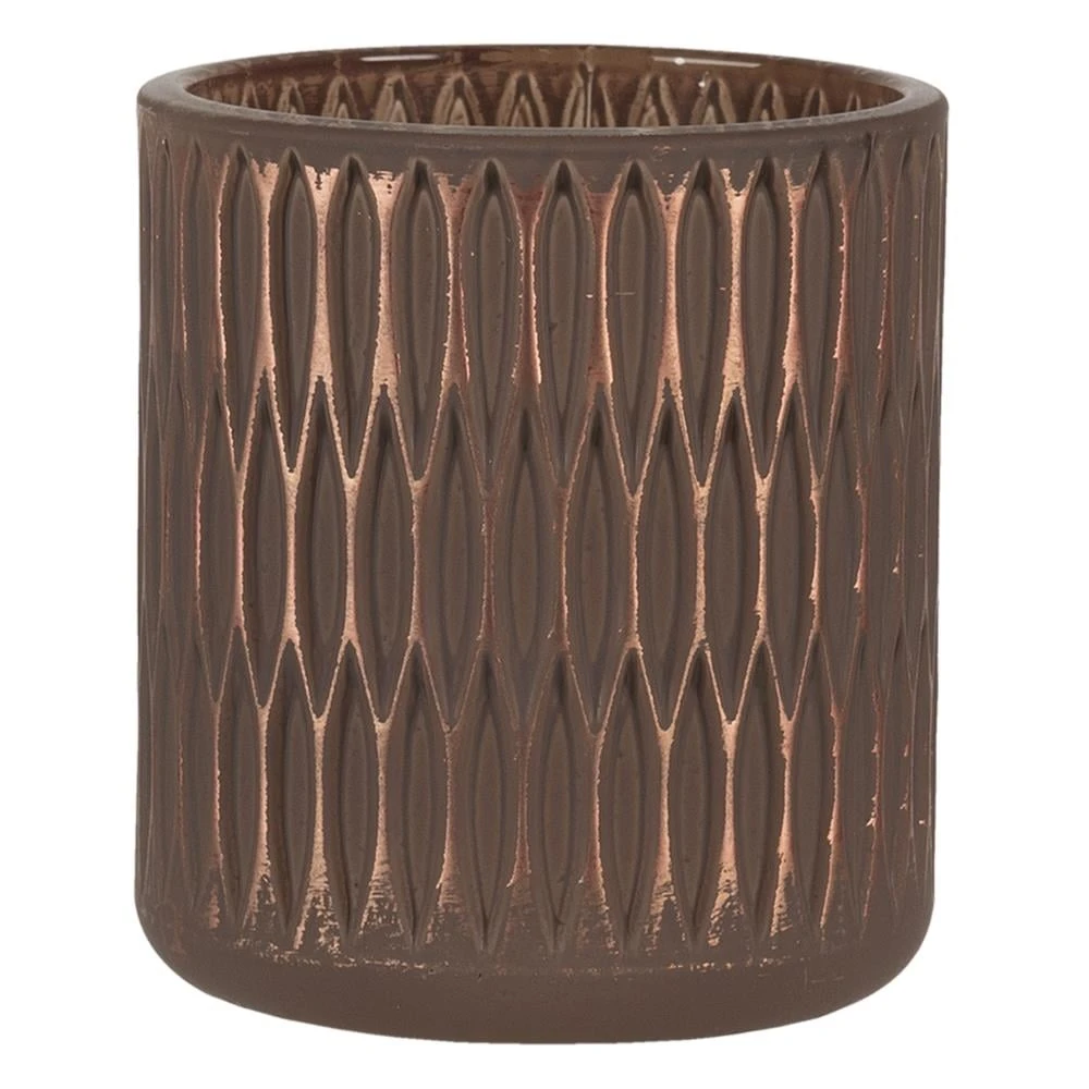 Clayre & Eef Theelichthouder Ø 8×9 cm Bruin Glas Rond